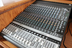 It also includes a variety of audio and visual equipment; a built-in projection screen and projector as well as a sound board on the top balcony.